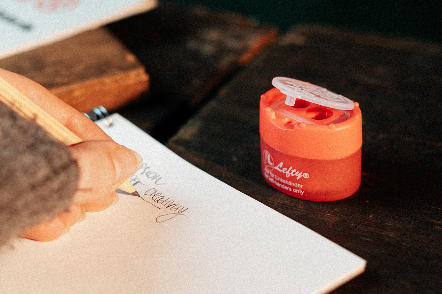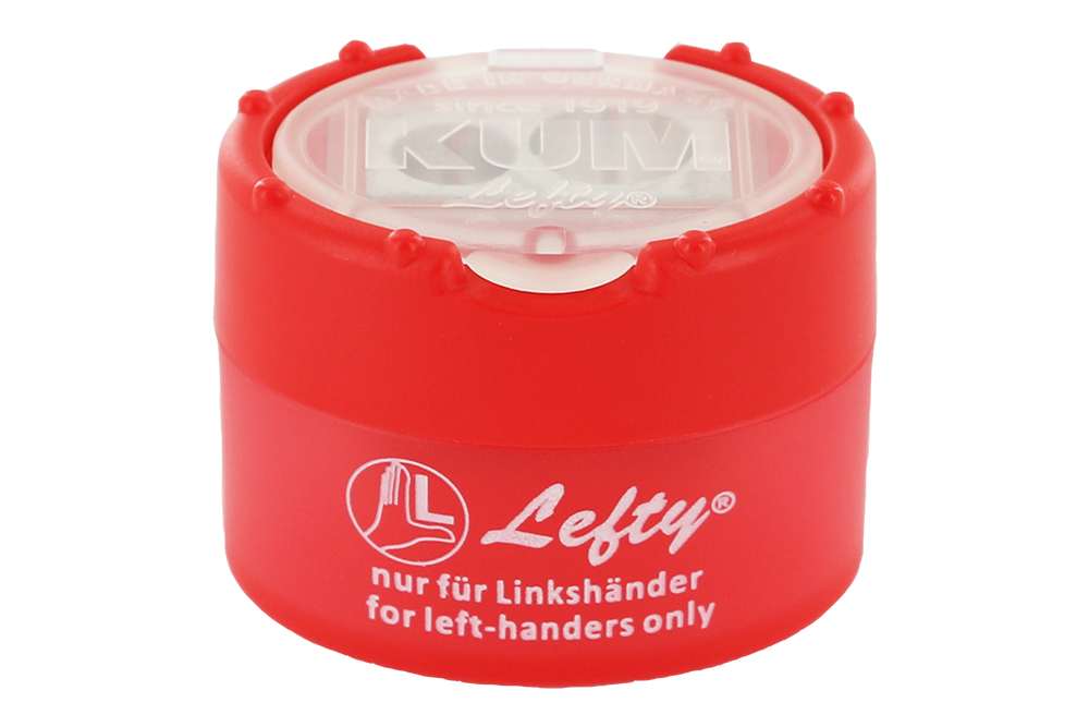 The Click-Snap Lefty® for left-handers ensures ergonomic handling in which the pencil is turned outwards with the left hand. This allows more force to be applied and the tip to be sharpened evenly. In contrast to a right-handed sharpener, working with a left-handed sharpener is made much easier, which means that pens remain intact for longer and movement becomes smoother.