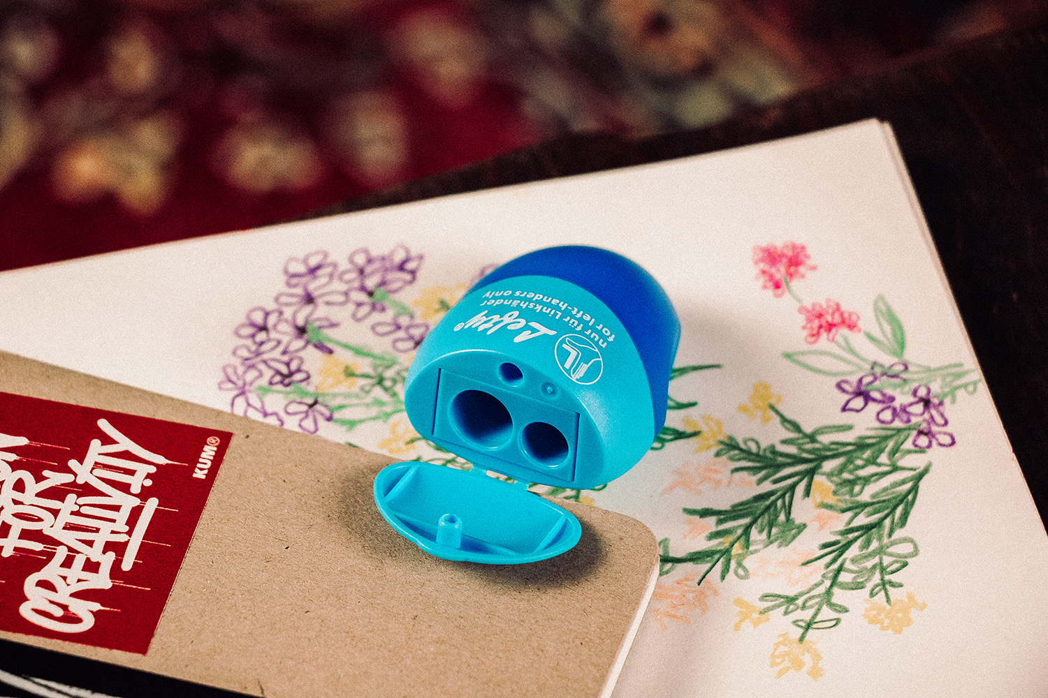 The double sharpener is suitable for pencils with 8 mm and 11 mm diameters and is especially suitable for left-handers. The container has ergonomically designed recesses for the index finger and thumb and enables safe handling.